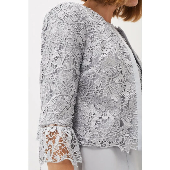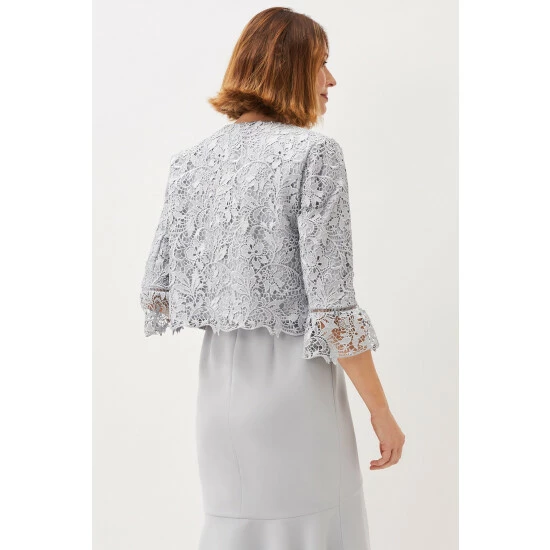 Full of detail and texture, this contemporary cropped occasion jacket features an intricate floral lace design – Phase Eight particularly love the fluted sleeve cuffs. Perfect for mother of the bride or groom.