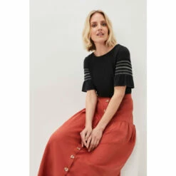 A style you’ll keep reaching for. Designed in a gorgeous terracotta shade, Phase Eight’s Allesia maxi skirt is designed with contrast button down detailing. Style with neutral t-shirts and sandals for a relaxed, stylish summer look.