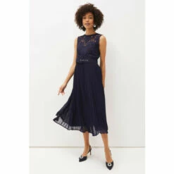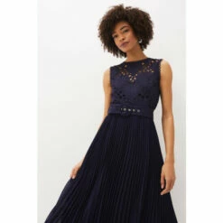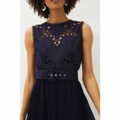 With its exquisite lace bodice and pleated skirt, there’s so much to love about the Amora dress. Cut in a sleeveless silhouette, this romantic style will be one you reach for again and again this party season. Finished with an adjustable buckle belt.