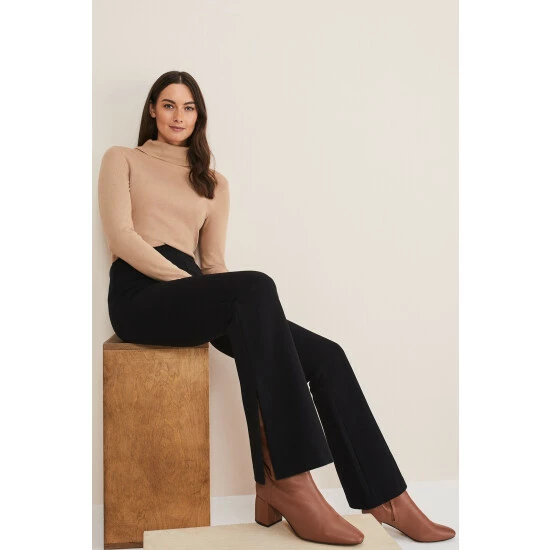 Add these failsafe trousers to your staple wardrobe. Inspired by the 60s, our bootcut trousers are designed to a high-waisted cut and feature contemporary side slits and are finished with handy pockets. Layer over your new season knits and style with leather boots.