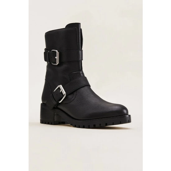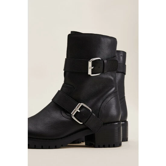 The style you need this season: tap into the biker trend with our premium leather Alaska ankle boots. Featuring double buckle detailing, a round toe and chunky 5cm heel, there’s no denying the appeal of this modern style. Wear them with all of your day-to-day looks – from jumper dresses to jeans. These boots feature padded insoles to cushion and contour for extra all-day comfort.