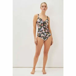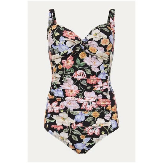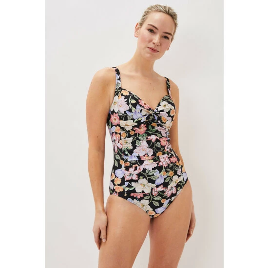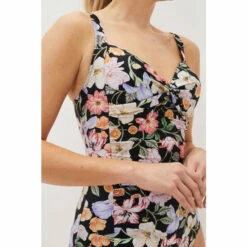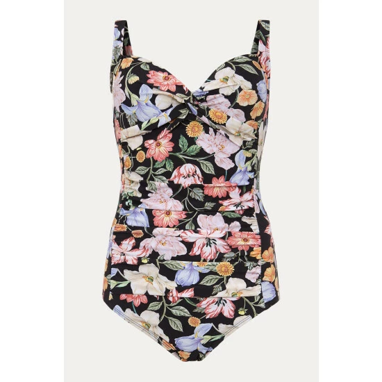 Our floral swimsuit is designed with flattering panelling and a twisted detail at the sweetheart neckline. All of our swimwear is designed with a supportive mesh fabric and bust cups.