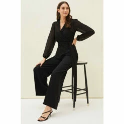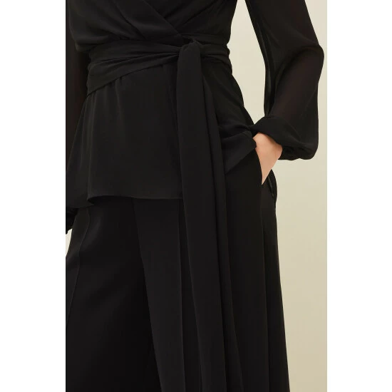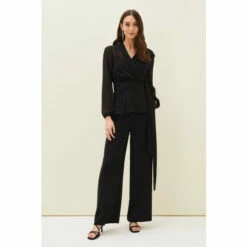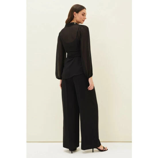 For a more contemporary take on occasion dressing, look no further than the Florentine co-ord. Designed in a classic black shade, this matching set features these wide leg, high waisted trousers with pressed seams running down the front and back.