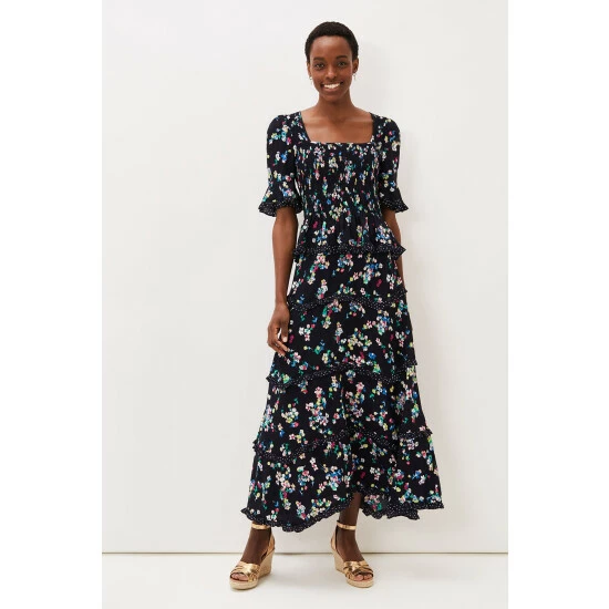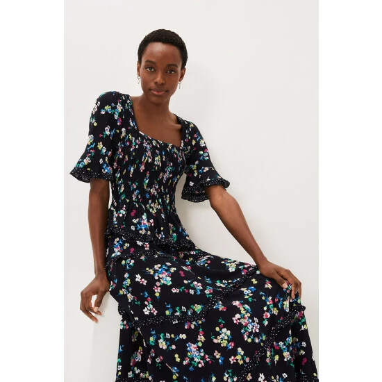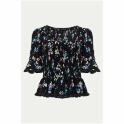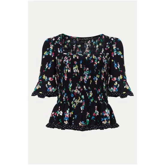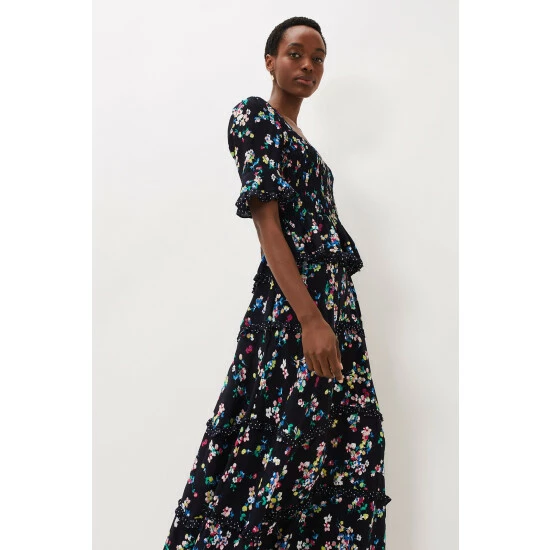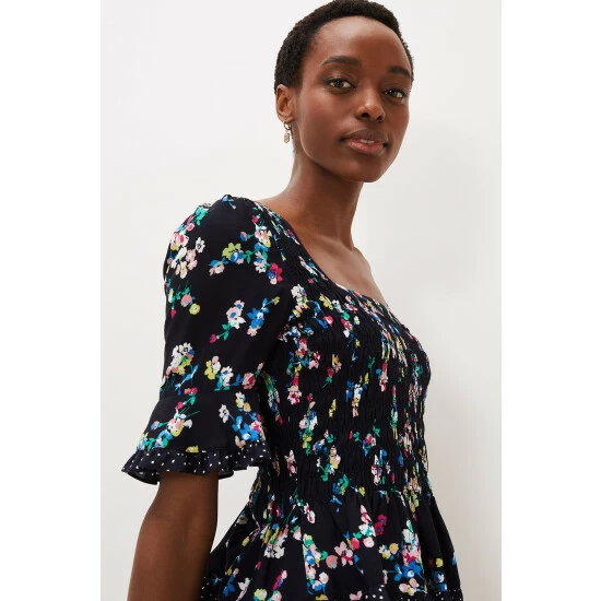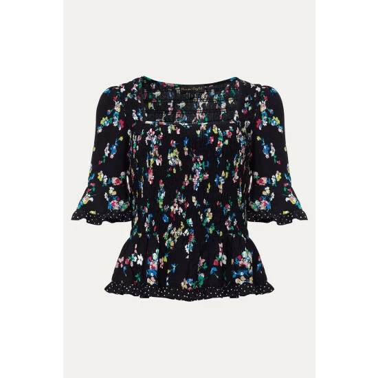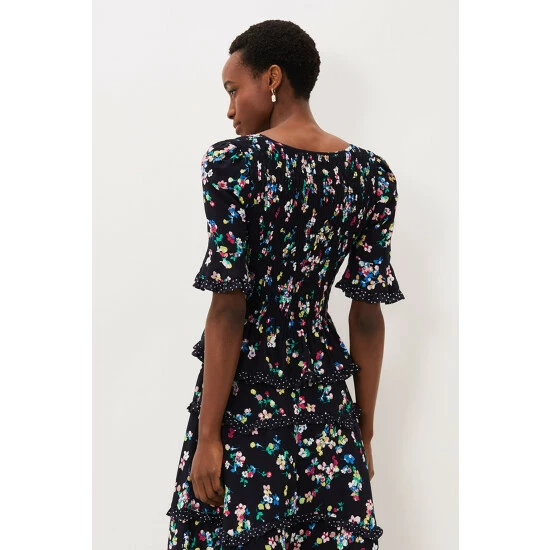 Designed with a square neckline and fluted sleeves, this co-ord top is full of details and versatility. Featuring a ditsy floral print with contrast spot print accents, this style is designed to be worn with the matching Hudson skirt for a complete look.