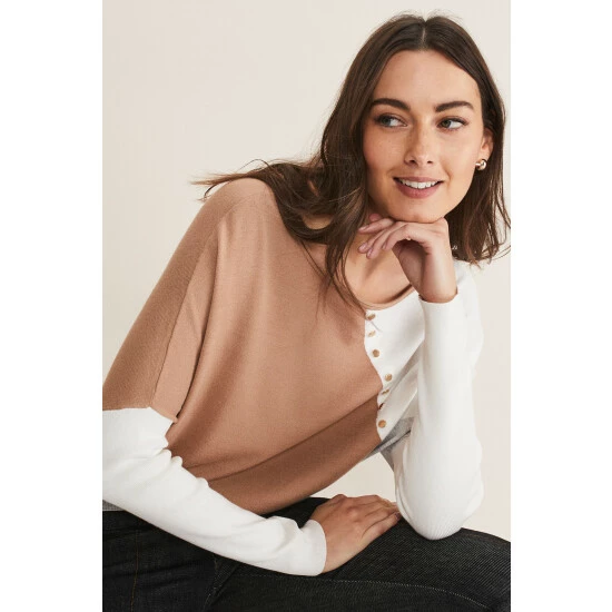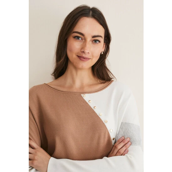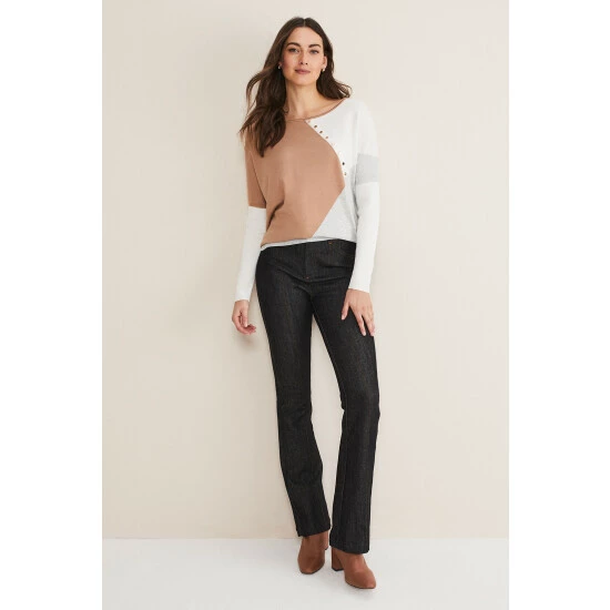 Elevate your knitwear collection with our Isabel colourblock jumper. Cut from a super soft fabric to a relaxed fit, our Isabel jumper features statement stud detailing. We wear ours with black jeans and black boots for a casual, weekend look.