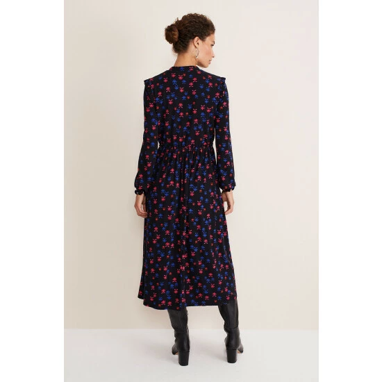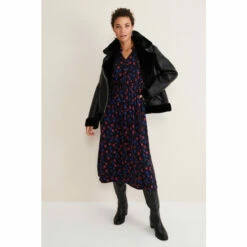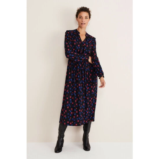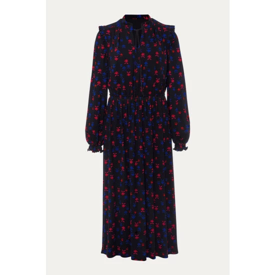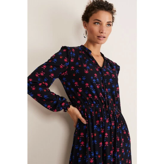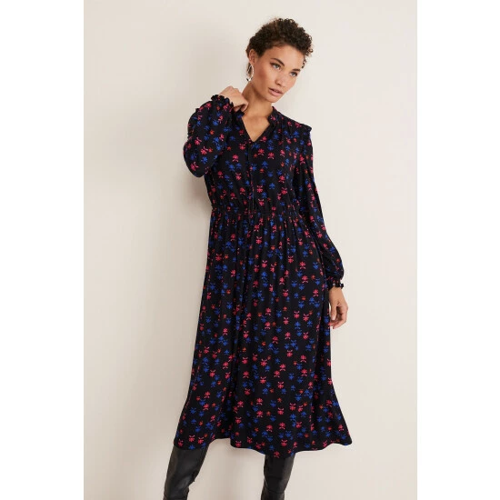 Your new do-it-all dress. Our dress features an on-trend print, with a feminine notched neckline, long sleeves with elasticated cuff detailing and falls to a loose, flowing silhouette. Wear with boots for a stunning desk-to-dinner look. This style is responsibly sourced. This style has been made from certified renewable wood sources. LENZING™ ECOVERO™ viscose uses a responsible production process, generating up to 50% lower emissions and water impact than generic viscose.