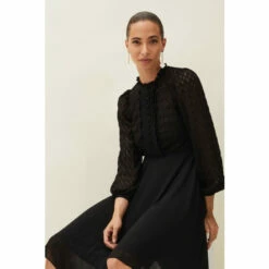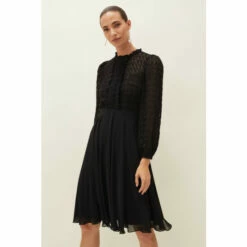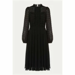 Update your day-to-night dress collection with this effortlessly elegant style. With intricate lace detail through the bodice and semi sheer sleeves and a flatteringly fit and flare shape, this dress will take you seamlessly from boardroom to bar with a simple switch of accessories.