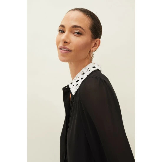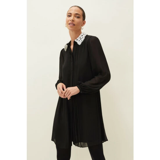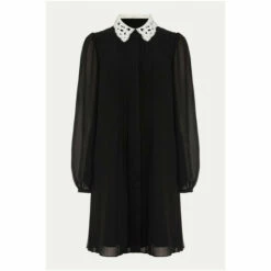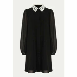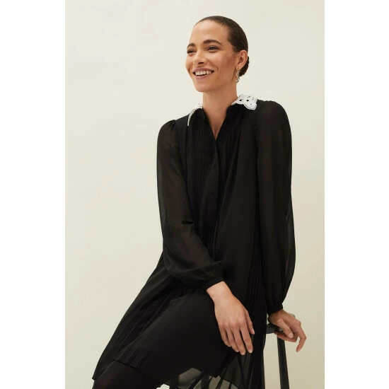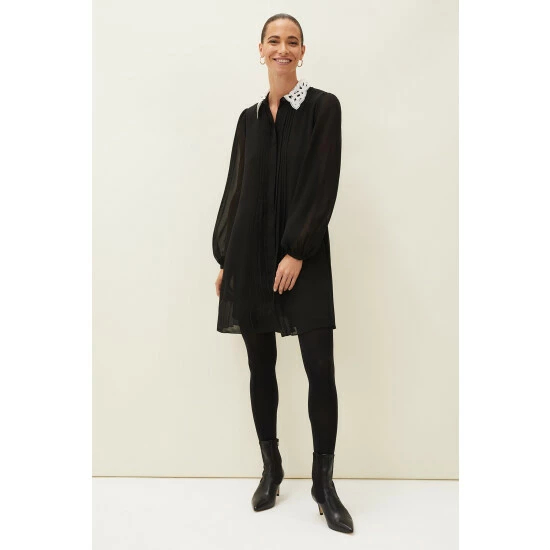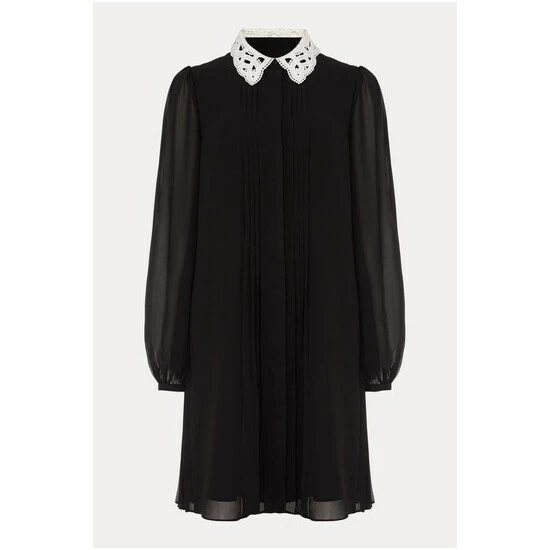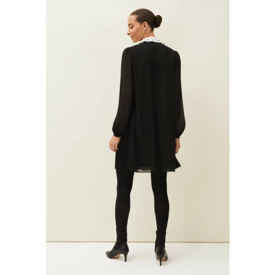Part of Phase Eight’s Sustainably Sourced Collection. This style has been made from recycled polyester, giving materials that would have ended up in landfill a new lease of life. This effortless black swing dress is elevated by the Broderie detail collar, inspired by the Victorian lace trends seen all over the catwalk this season. Wear this style with tights and boots for the perfect boardroom to bar look.