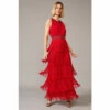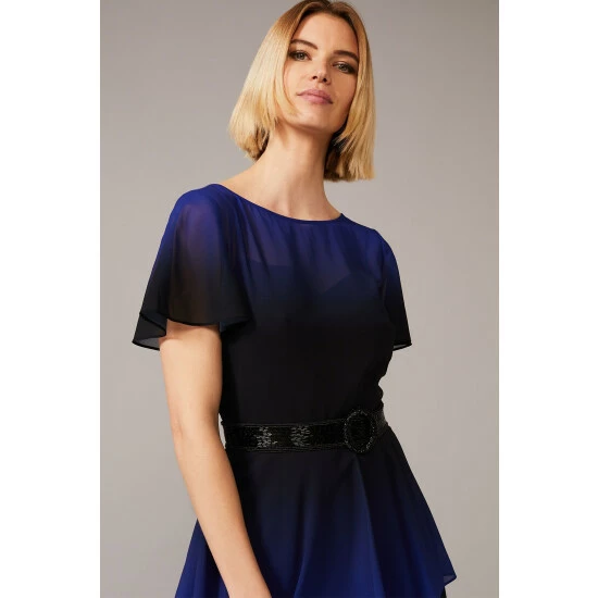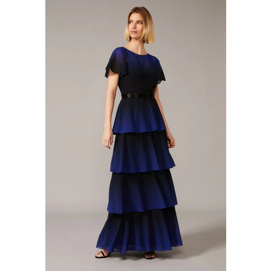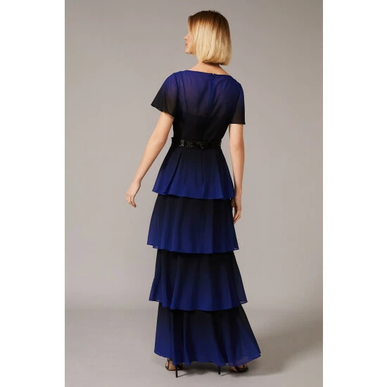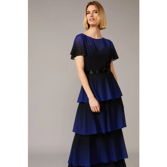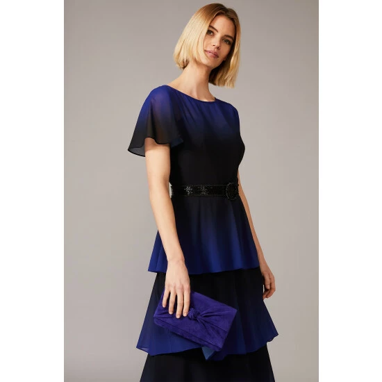 From Collection 8, Phase Eight’s stunning range of premium evening dresses. What we love most about the Rosalie style is how the ombré effect enhances the movement of the tiered ruffle skirt, this design makes it the perfect dress to dance in. This look is framed with a sweet heart neckline and fluted sleeves, whilst a beaded detachable belt adds a shimmering finishing touch.