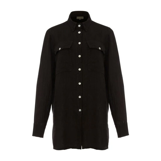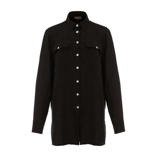 Oversized in fit, our 100% Zenni linen shirt is perfect for bringing a sense of relaxed style to your looks. Designed with a classic collar, patch pockets and a working button placket, we re wearing ours with the faux leather leggings.