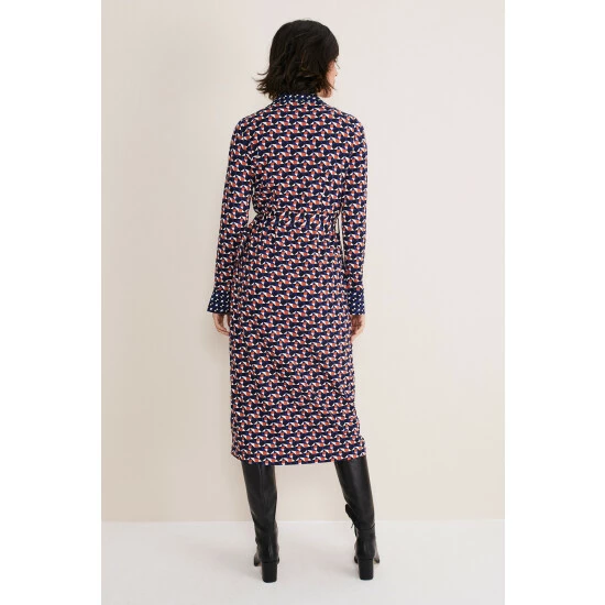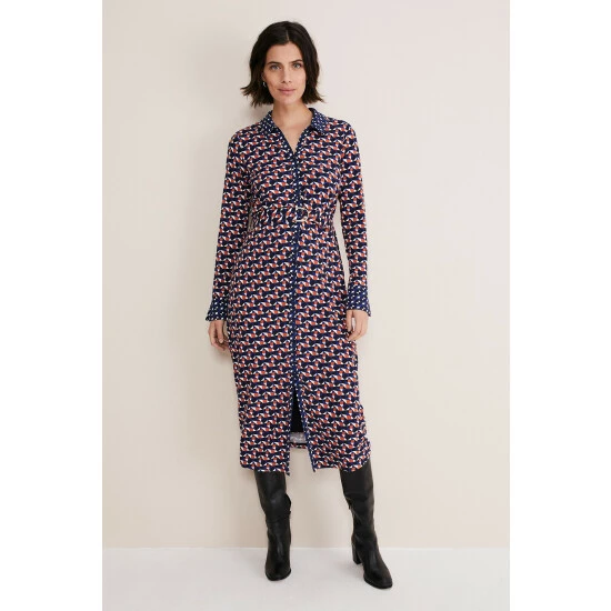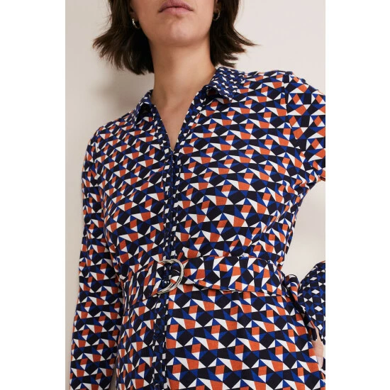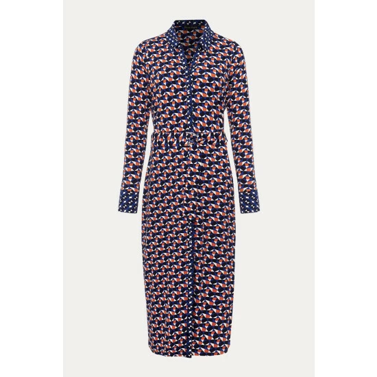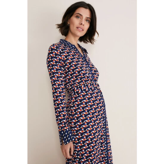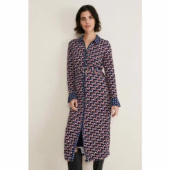 A striking dress you’ll reach for again and again. Designed in an on-trend geometric pattern with an orange, blue and white-colour palette, our dress features a slim fit silhouette, button-down detailing, long sleeves and falls to a versatile midaxi length. We wear ours with knee-high boots for the perfect desk-to-dinner look. This style is responsibly sourced. This style has been made from certified renewable wood sources. LENZING™ ECOVERO™ viscose uses a responsible production process, generating up to 50% lower emissions and water impact than generic viscose.