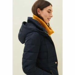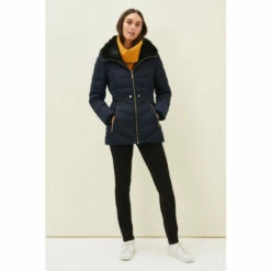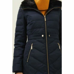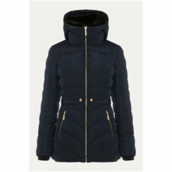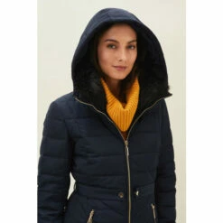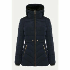 The Bobbie Short Puffer Coat is designed in a warm quilted fabric with exposed zips and tab details on the waist. A ruched belt with metallic buckle has been added for extra waist definition. This shower proof style is finished with zip pockets and a detachable faux fur collar on the hood for even more warmth.