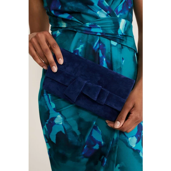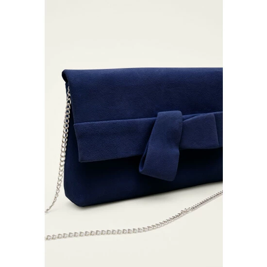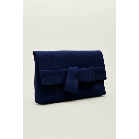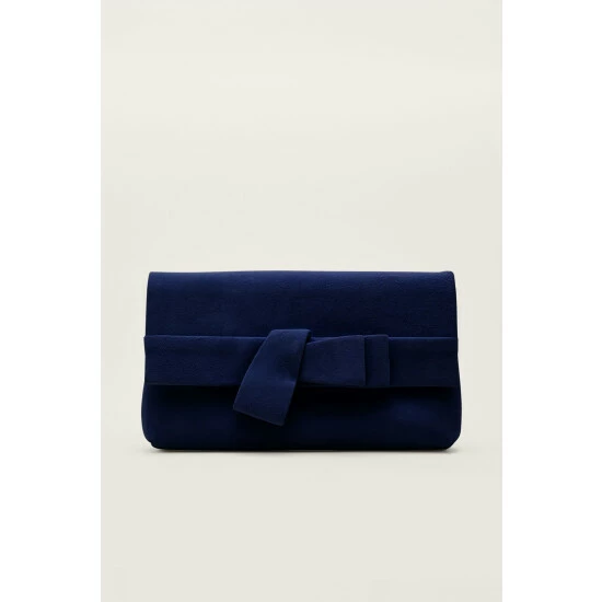 A stylish clutch bag is an essential for the occasion season. This suede style is designed with an elegant bow detail. Style with a tonal dress for a coordinated event look.