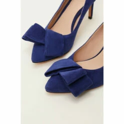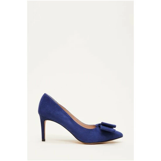 Designed in a deep navy blue shade with a feminine bow detail on the toe, these suede kitten heels are the perfect occasion accessory. Coordinate with a bow clutch bag.