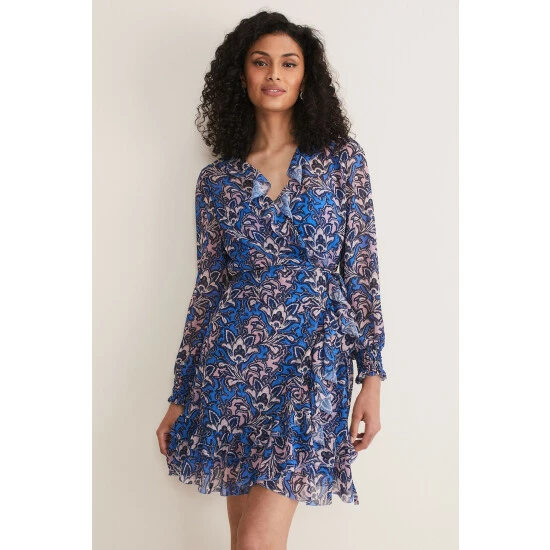 A stunning paisley print dress that you ll reach for time and time again. Designed with a flattering wrap dress silhouette, our Camile dress features blouson sleeves and ruffles that frame the neckline and hem of the skirt. We’ll be dressing this up with all the accessories to match. This style is responsibly sourced. This style has been made from recycled polyester, giving materials that would have ended up in landfill a new lease of life.