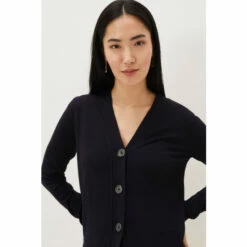 Our Camille cardigan is timeless, designed in a deep navy shade from soft knit material, it features a flattering v-neck and working buttons. It’s the perfect layer to go with all your pieces – check out our longline Camille if you’re looking for that extra bit of length.