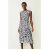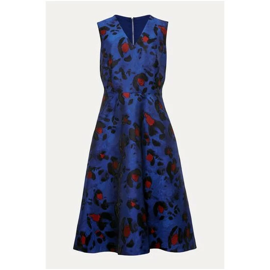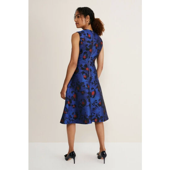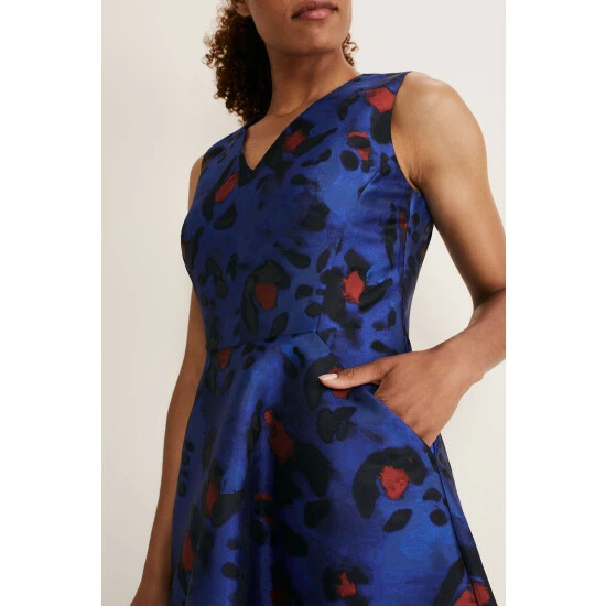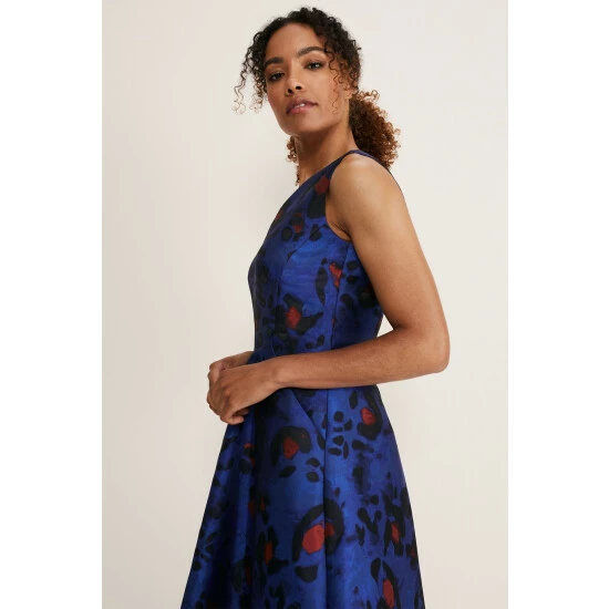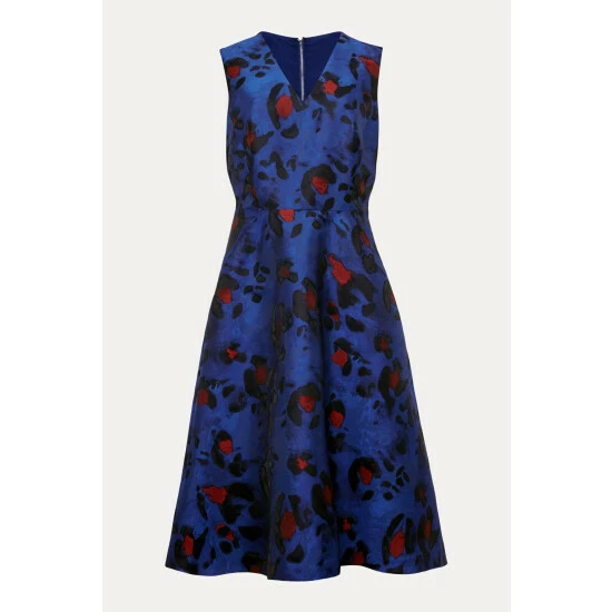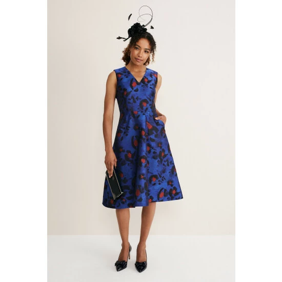 One of our much-loved silhouettes in a brand new design. Our Clarisse dress features a fit and flare silhouette with a feminine V-neck and zip back detailing and is completed with a celebration-ready jacquard shine finish. They wear ours with black heels for a perfect look for weddings, race days and parties. This style is responsibly sourced and has been made from recycled polyester, giving materials that would have ended up in landfill a new lease of life.