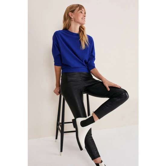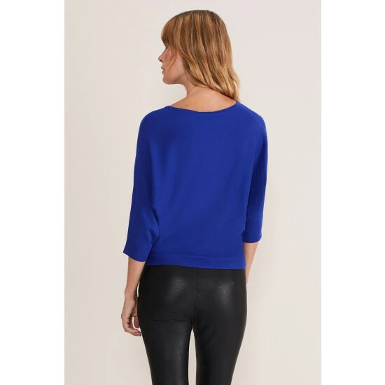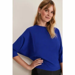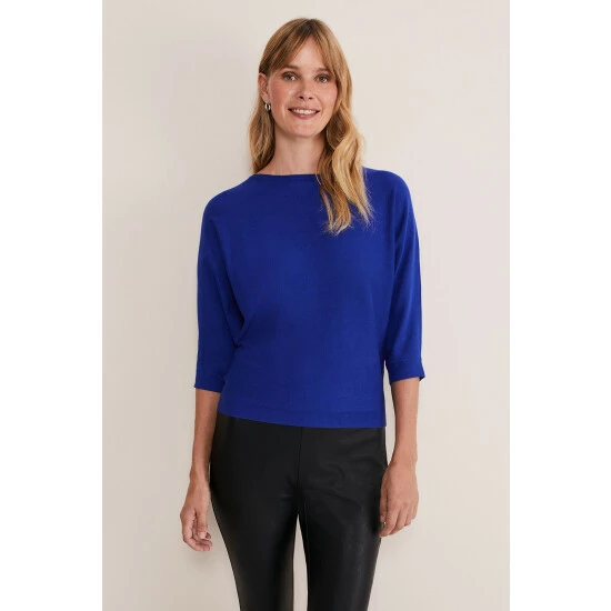 Our signature Cristine fine knit jumper in a brand new cobalt shade. It’s designed with batwing sleeves and a modern slash neckline and is the perfect piece to wear with jeans or leggings for an off-duty look.
