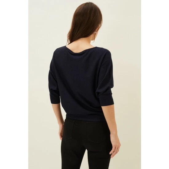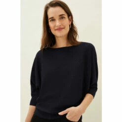 Their signature Cristine fine knit jumper is designed with batwing sleeves and a modern slash neckline. Perfect for easy off-duty style worn back with jeans or leggings.
