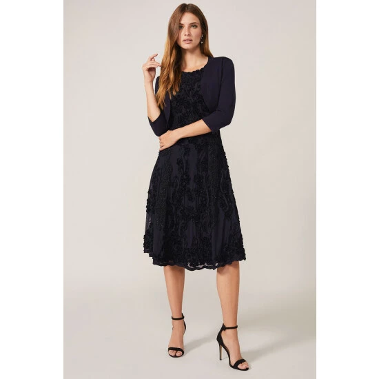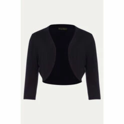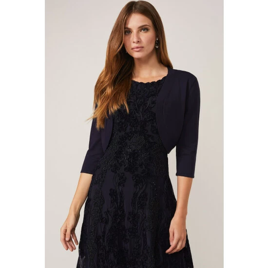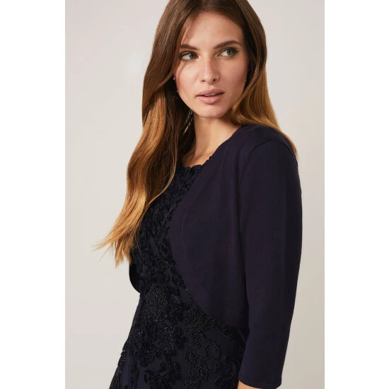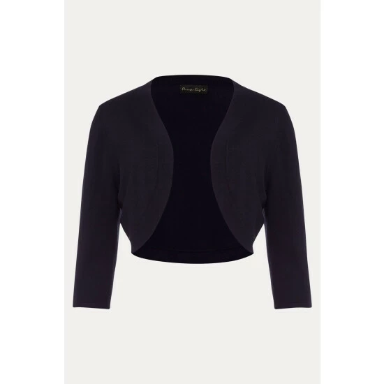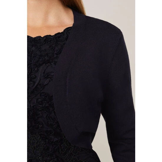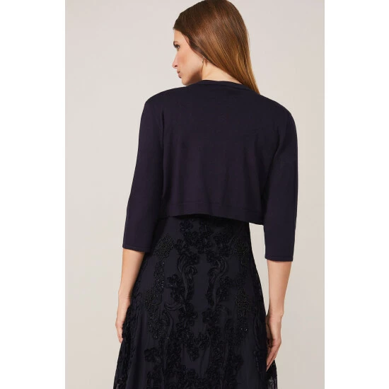 A versatile knit bolero with three-quarter length sleeves and curved open front. The perfect finishing touch for your occasion outfit.