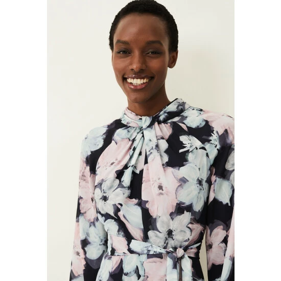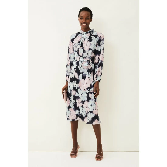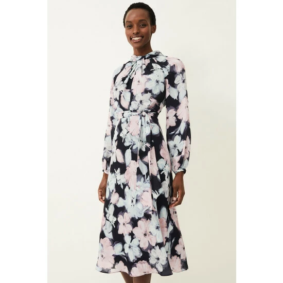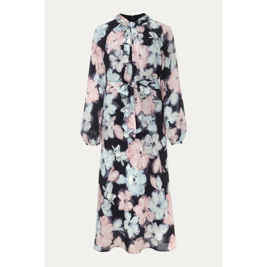 Designed with a painterly floral print, the Ella Dress is cut in an elegant, high-neck silhouette that falls just below the knee. Framed by long blouson sleeves and a twist neckline, this occasion style is finished with a matching waist tie to define your figure. Perfect for those future RSVPs.