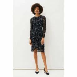 Simple yet sophisticated, you can’t go wrong with a polka dot dress. Cut in a fitted silhouette, this effortlessly elegant style is finished with long sleeves and a split at the front for ease of movement. Perfect for desk to dinner style.