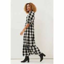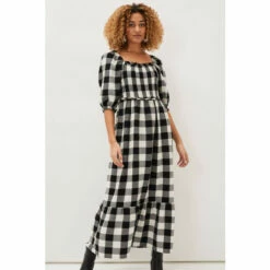 Designed in on-trend gingham, our Evlin Dress is the perfect style to invest in for spring/summer. Falling to a romantic maxi length, this dress is framed by a peplum hem, puff sleeves and a square neckline. Frill detailing on the bodice and sleeves finishes this look.