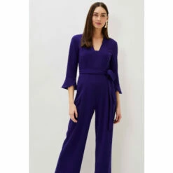 The deep blue shade is just one of many features we love about the Eydie Jumpsuit. Cut in a flattering wide leg silhouette, this tailored jumpsuit is designed with shaping seams, fluted sleeve cuffs and a classic V-neckline. Wear to all your RSVPs in the New Year.