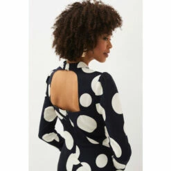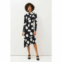 A key piece for us this season, our Gabi Spot Dress is a true statement style. Cut in a fitted silhouette, this dress is designed with an oversized spot print and finished with a modern asymmetric hem. Perfect for both day and evening wear with just a switch of styling.