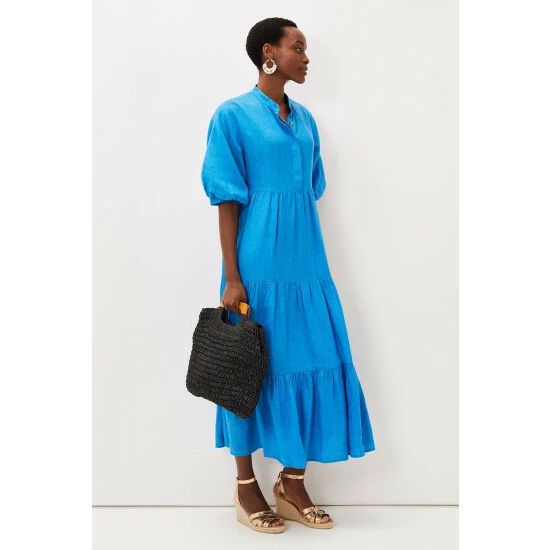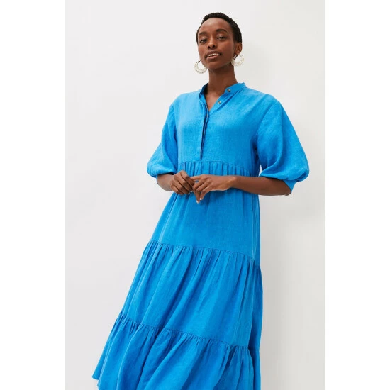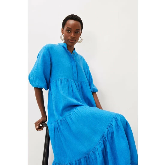 Meet Gracie, your new everyday dress. Designed with a relaxed fit, this linen-blend, maxi-style tiered dress features a working button-through bodice and statement sleeves. Dress it up with sandals or dress down with white trainers for a more casual daytime look.