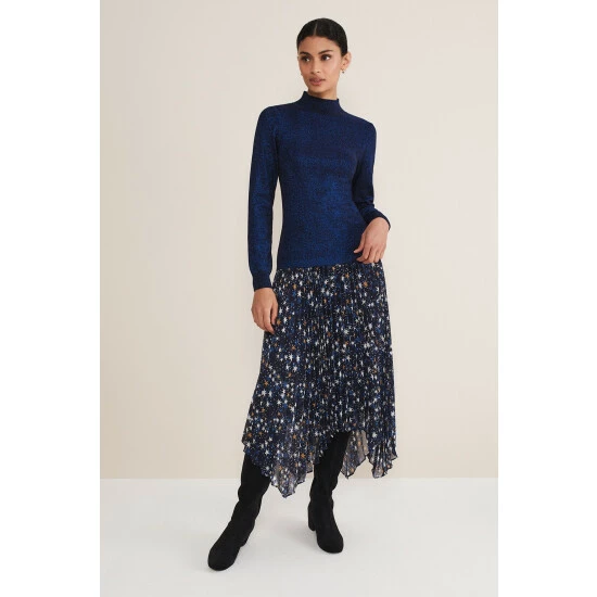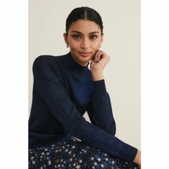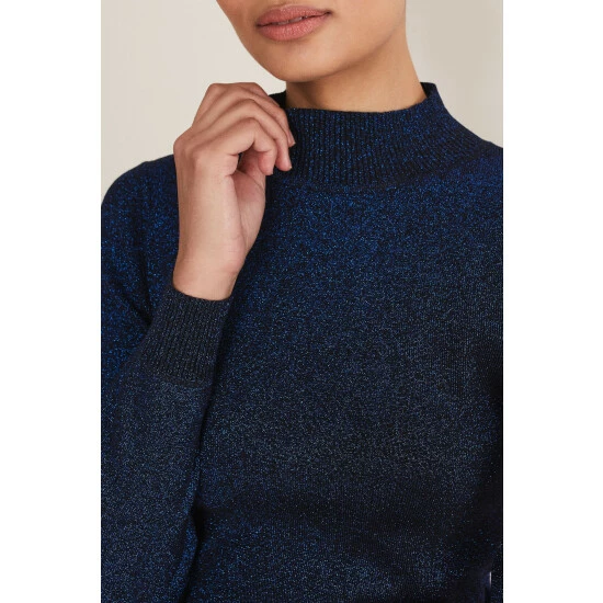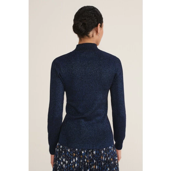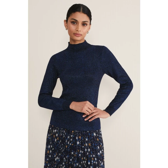 A staple knit for your capsule wardrobe. Our Gwyneth fine knit is designed with statement balloon sleeves in a deep midnight shade that will add something a little different to your wardrobe separates. It can be dressed up with our star print skirt and knee-high boots or dressed down with jeans and boots.