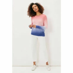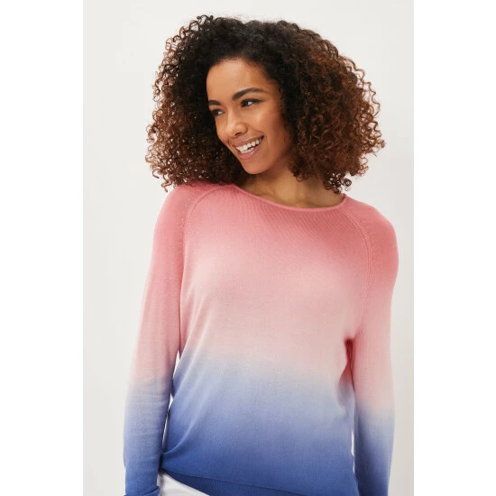 An vibrant fine knit to add to your everyday wardrobe. Our slim fit top is designed with a boat neck, and on-trend ombre from pale pink to navy blue.