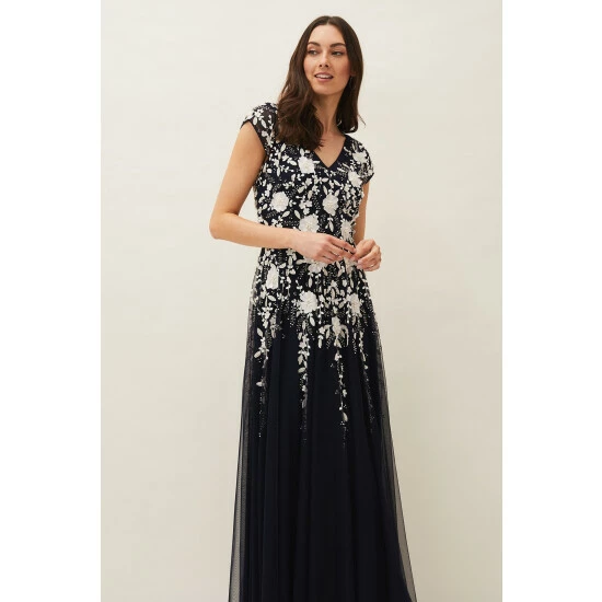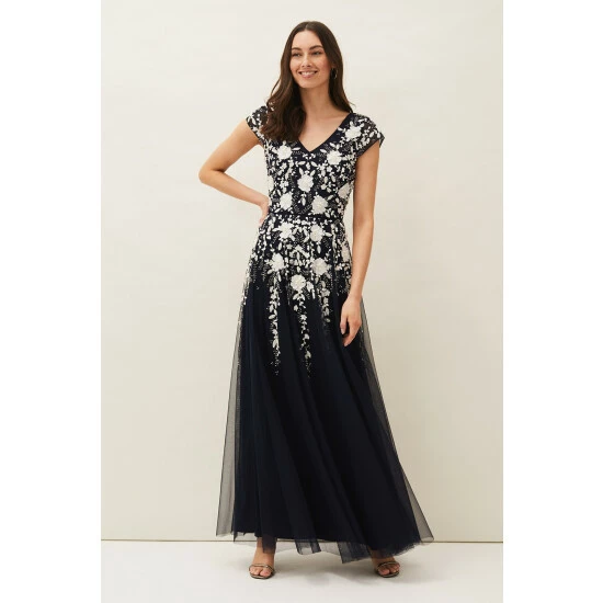 From Collection 8, a stunning range of premium evening dresses. Designed with trailing floral embellishment and applique, a softly flared tulle maxi skirt and classic V-neckline, this Henriette dress is a style for your biggest upcoming occasions this year.