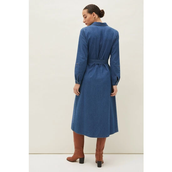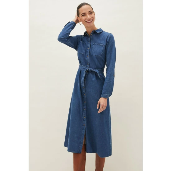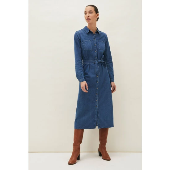 Effortless yet refined, this denim midi dress is the style that will see you Monday to Sunday. The waist is cinched in with a belt and the softly blouson sleeves add volume – they’ll be styling ours with trainers and ankle boots this season.