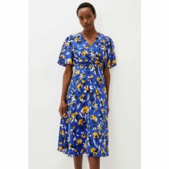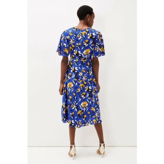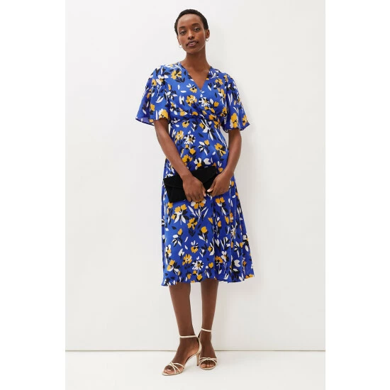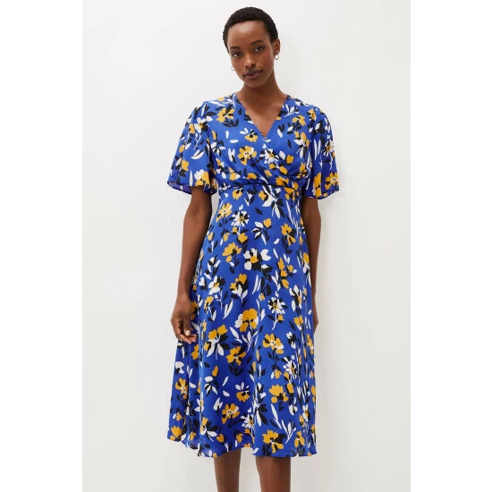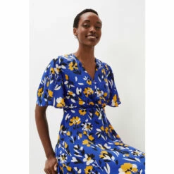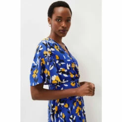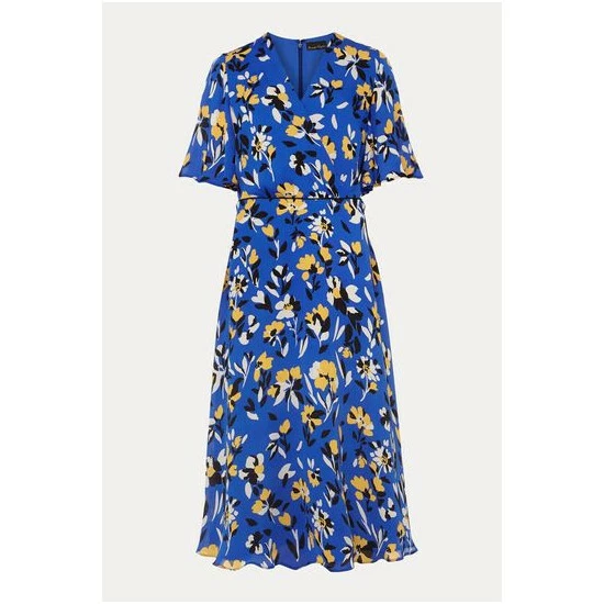 With it’s beautiful cerulean shade and vibrant canary yellow floral print, the Jayla Dress is a style everyone is talking about. Designed with a faux wrap bodice, fluted sleeves and elegant midi length, this occasion dress is sure to get heads turning and compliments are guaranteed.