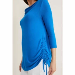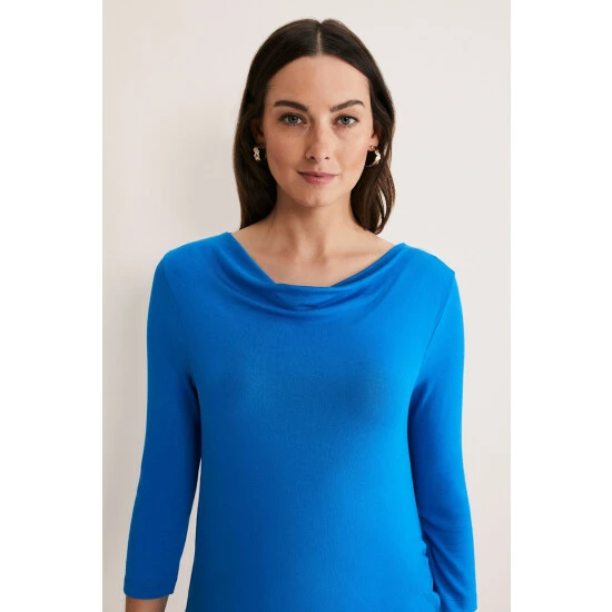 An essential top for your everyday wardrobe. Designed in a colour-pop blue with an on-trend cowl neck and drawstring hem detailing, this is perfect to wear with all your separates.