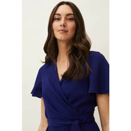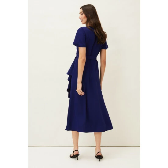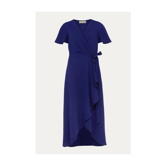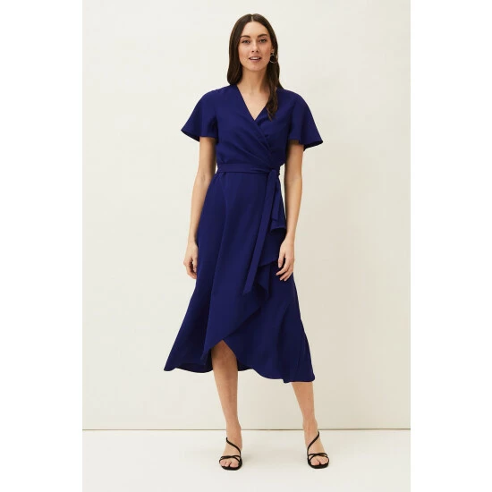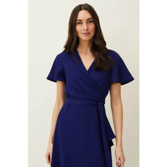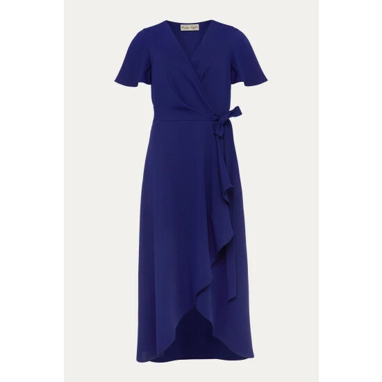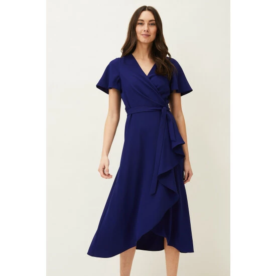 A layered frill hem adds impact to this elegant wrap dress, which is framed by softly fluted sleeves and is finished with a matching waist tie to highlight your silhouette. Perfect for your future RSVPs.