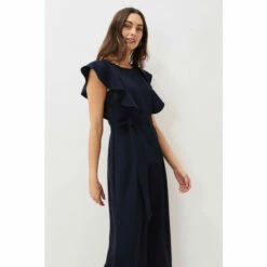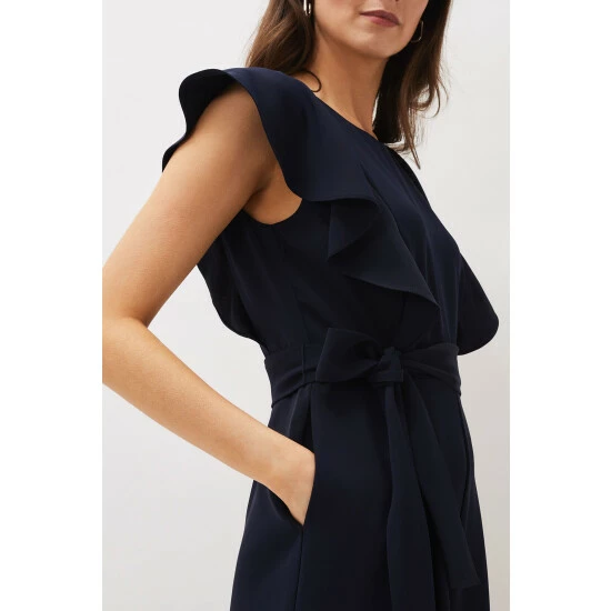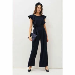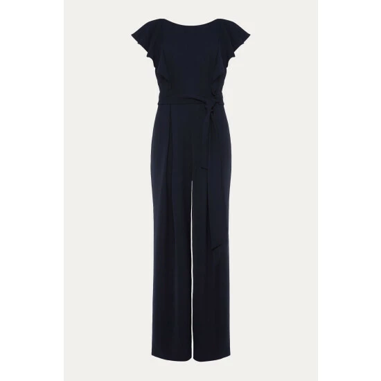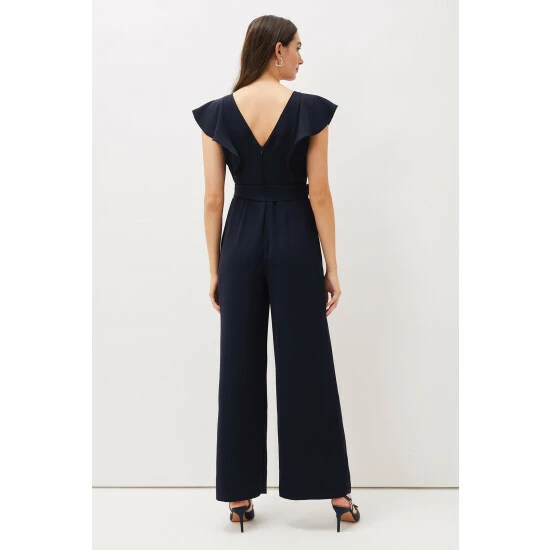 Sure to become your new failsafe evening look, this contemporary jumpsuit is designed with a unique frill detail at the bodice. || Model wears UK Size 10 and is 5 9″/175cm.