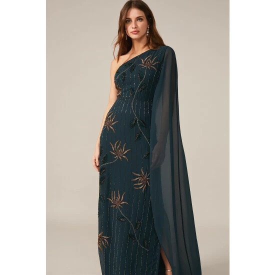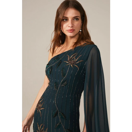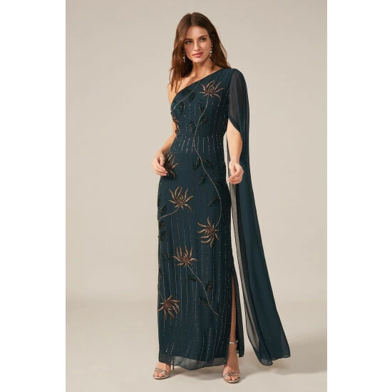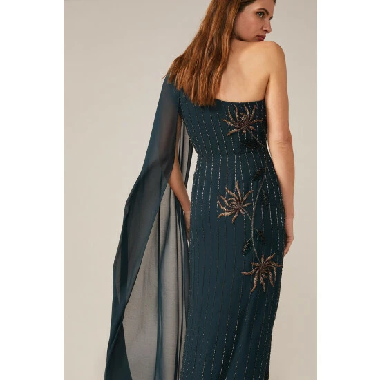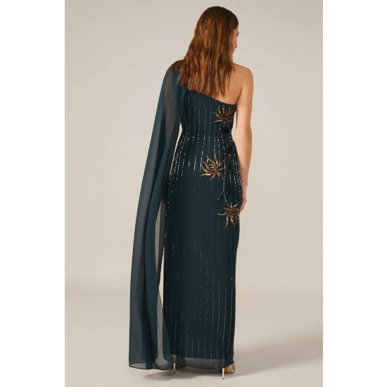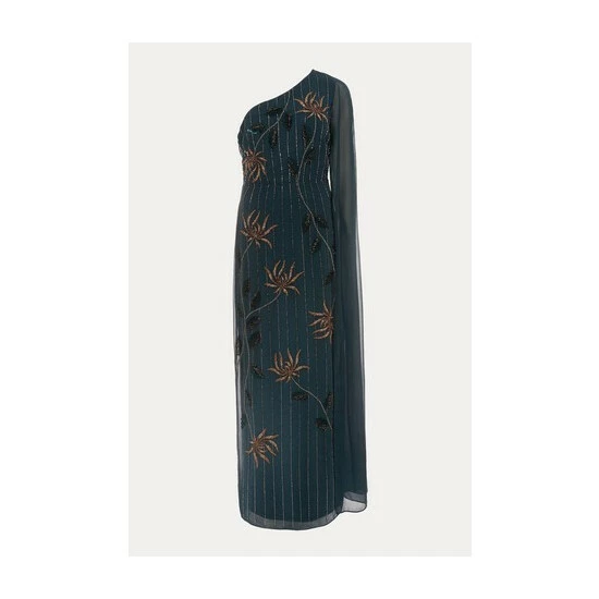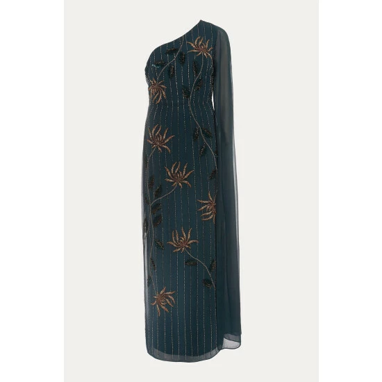 From Collection 8, Phase Eight’s stunning range of premium evening dresses. A standout style, the Kalina dress is designed in a modern one shoulder silhouette and features exquisite hand-placed embellishment throughout. Sitting close to the body, this statement dress falls to the floor and is made even more dramatic by the cape detail cascading from the shoulder. Proudly wear this style to your next black tie event.