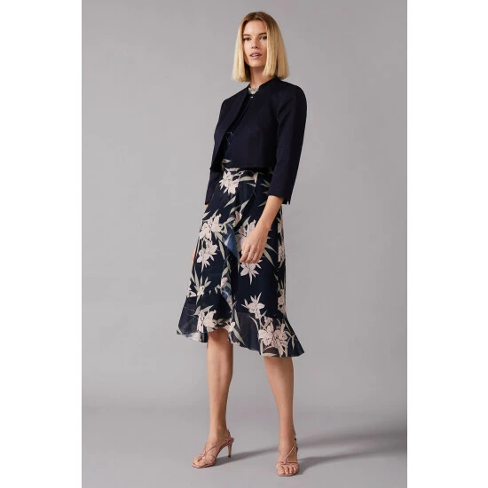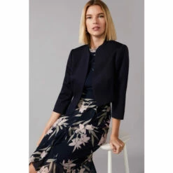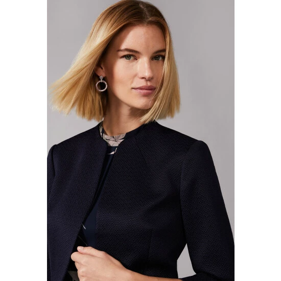 Perfect for special occasions, this fitted textured jacket is designed with flattering seam detailing and a curved open front for an elegant silhouette.