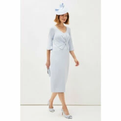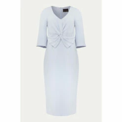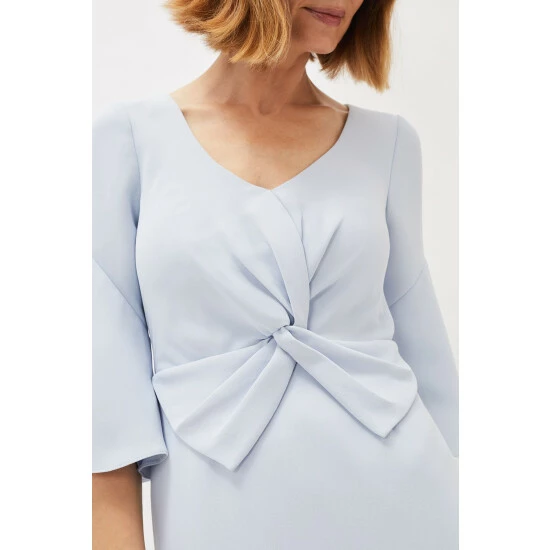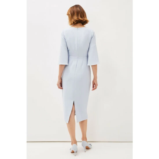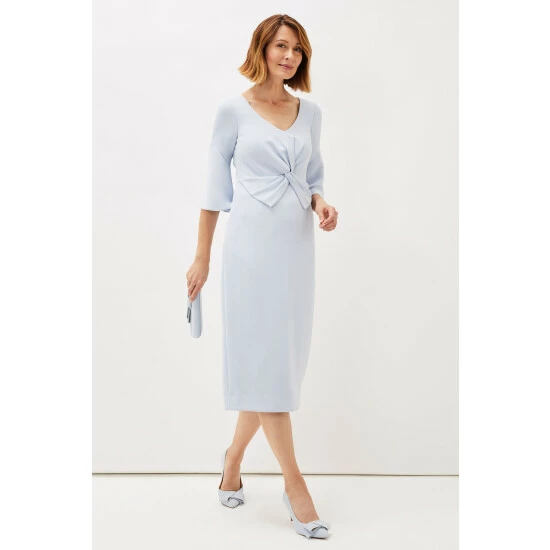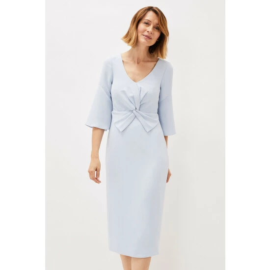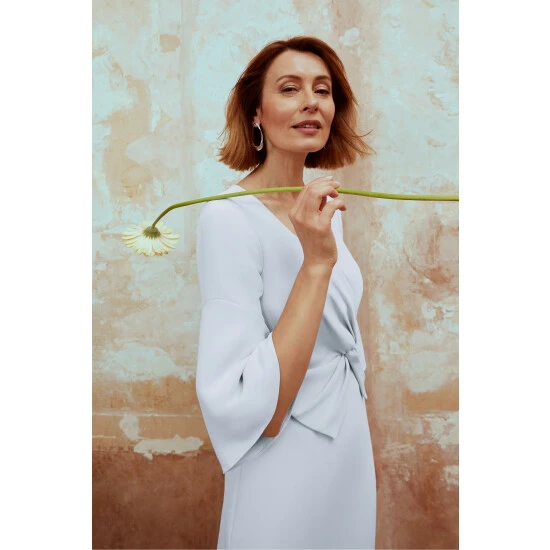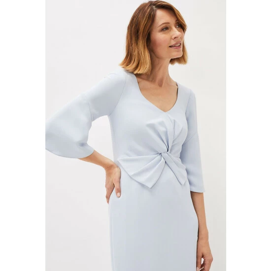 Effortless but not without impact, their Layla Midi Dress is cut in a fitted silhouette, with a statement bow detail on the bodice, fluted sleeves, an elegant V-neckline and split at the back of the skirt for ease of movement. Perfect for your future RSVPs or as a modern Mother of the Bride dress option. || Model wears UK size 10 and is 5 10″/178c.