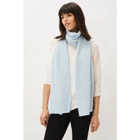 Add a touch of pastel colour to your looks with this pale blue scarf. Designed in a ribbed texture for a modern finish.