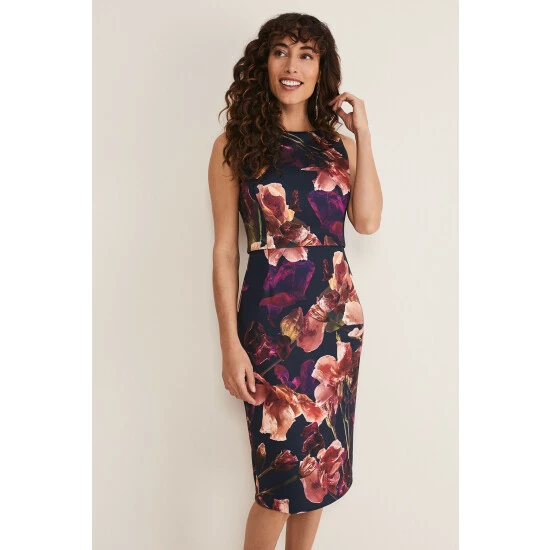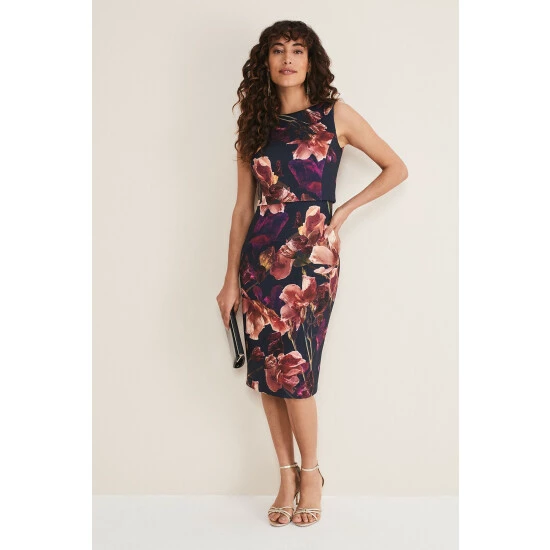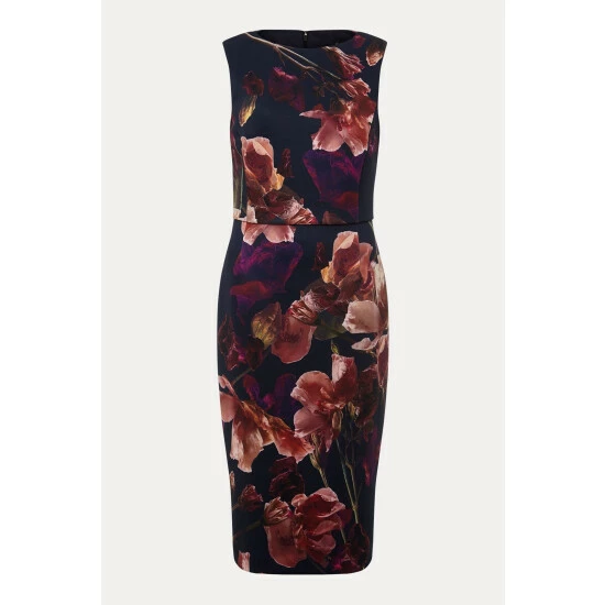 One of our much-loved silhouettes in a brand new design. Our Lorna dress features a stunning dark floral print cut from a soft scuba fabric in an elegant, short sleeve silhouette that falls just below the knee. Featuring a double-layer bodice, this occasion style is fitted to define your figure. Perfect for wedding guest style or special RSVPs.