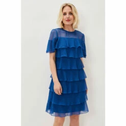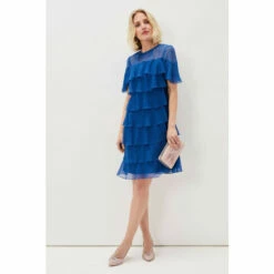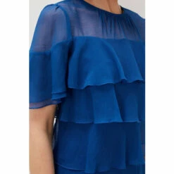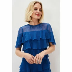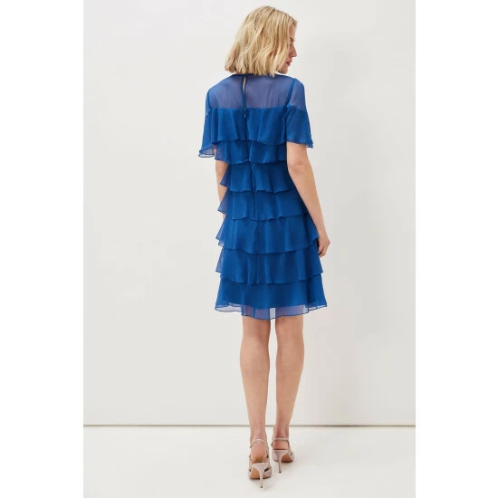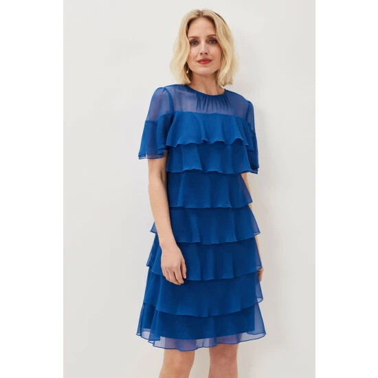 A dress made for dancing. Our Nika style features an eye-catching layered design that moves with you. A sheer yoke and short fluttery sleeves complete this contemporary look.