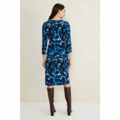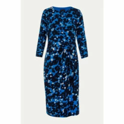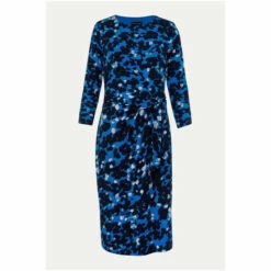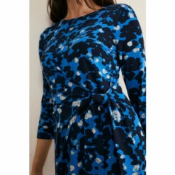 A truly stunning statement style. Designed in an eye-catching blue, our floral Niya dress features a round neck, 3/4 length sleeves and feminine ruching to accentuate your waist. We wear ours with knee-high boots for a stylish desk-to-dinner look. This style is responsibly sourced. This style has been made from certified renewable wood sources. LENZING™ ECOVERO™ viscose uses a responsible production process, generating up to 50% lower emissions and water impact than generic viscose.