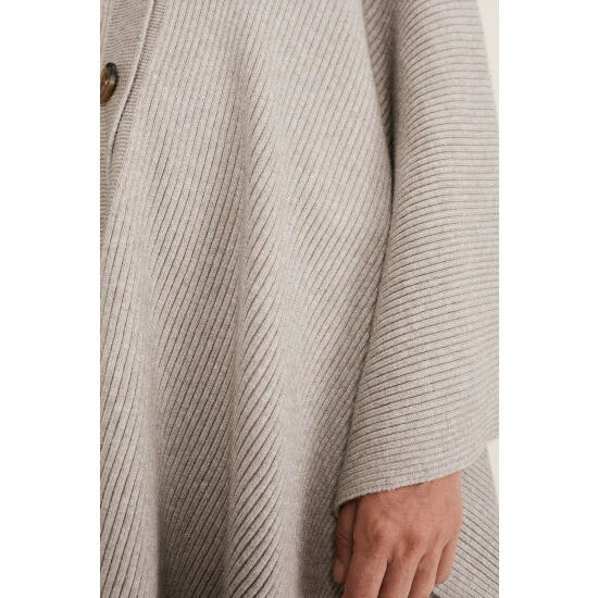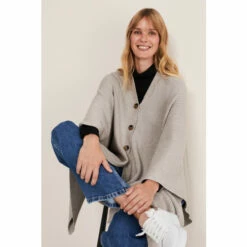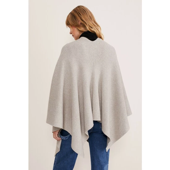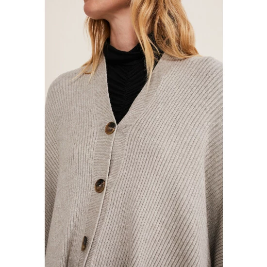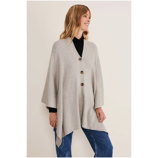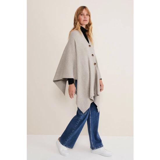 A new, contemporary style for us. Our poncho is crafted from super soft ribbed fabric and cut to an oversize, asymmetric silhouette and features contrast tortoishell button-down detailing. It’s perfect to layer over all of your outfits this season and is so cosy you won’t want to take it off.