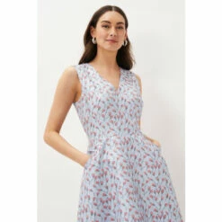 Effortless and timeless, this is the dress for your upcoming occasions. Designed in a delicate rosebud print, our sleeveless Rosebud dress features a flattering fit and flare silhouette, a feminine V-neckline and handy pockets! Wear with matching accessories to your next event. Part of their Sustainably Sourced Collection. This style has been made from recycled polyester, giving materials that would have ended up in landfill a new lease of life.