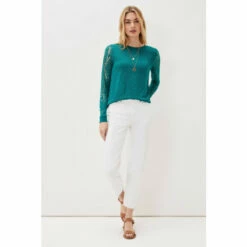 A gorgeous teal top is a wardrobe must-have. In on-trend burnout design, Phase Eight top features a classic crew neck and a slim fit. This burnout top is part of Phase Eight sustainably sourced collection. This style has been made from certified renewable wood sources. LENZING and ECOVERO viscose uses a responsible production process, generating up to 50% lower emissions and water impact than generic viscose. LENZING and ECOVERO are trademarks of Lenzing AG.