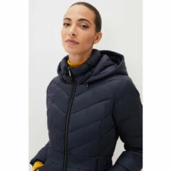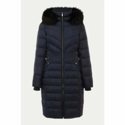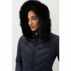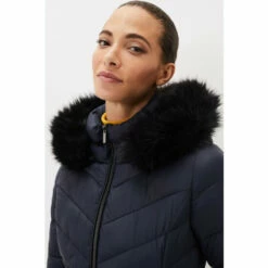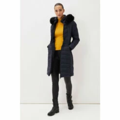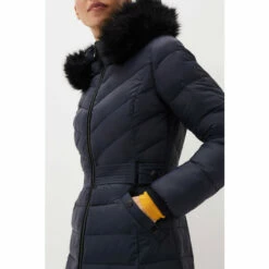 This warm shower proof puffer coat is perfect for beating the chill. They love the utility-inspired details and the high-shine finish. Designed with a detachable fur collar, zipped pockets and an adjustable belt to enhance your silhouette.