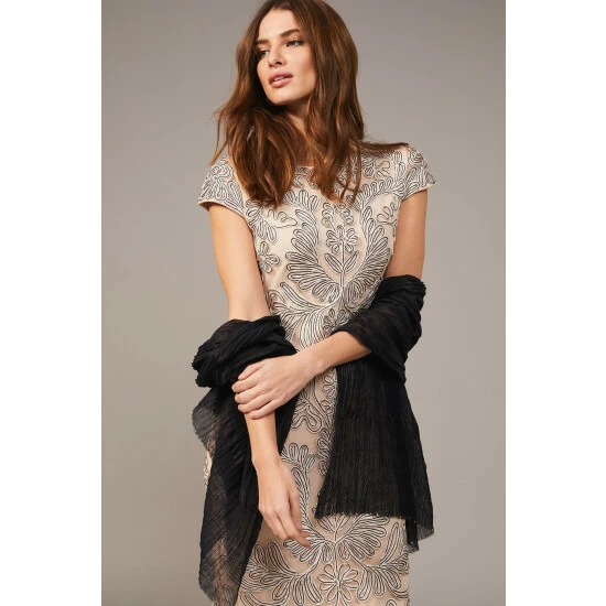 The Terrie silk-blend scarf will be an elegant complement to your occasionwear or evening outfits. Designed with contrast silk panels, gem embellishment and a delicate tassel trim.